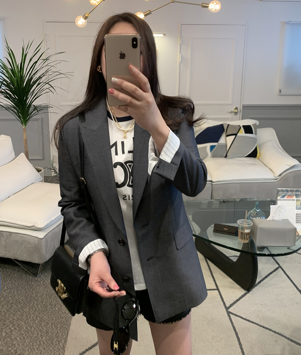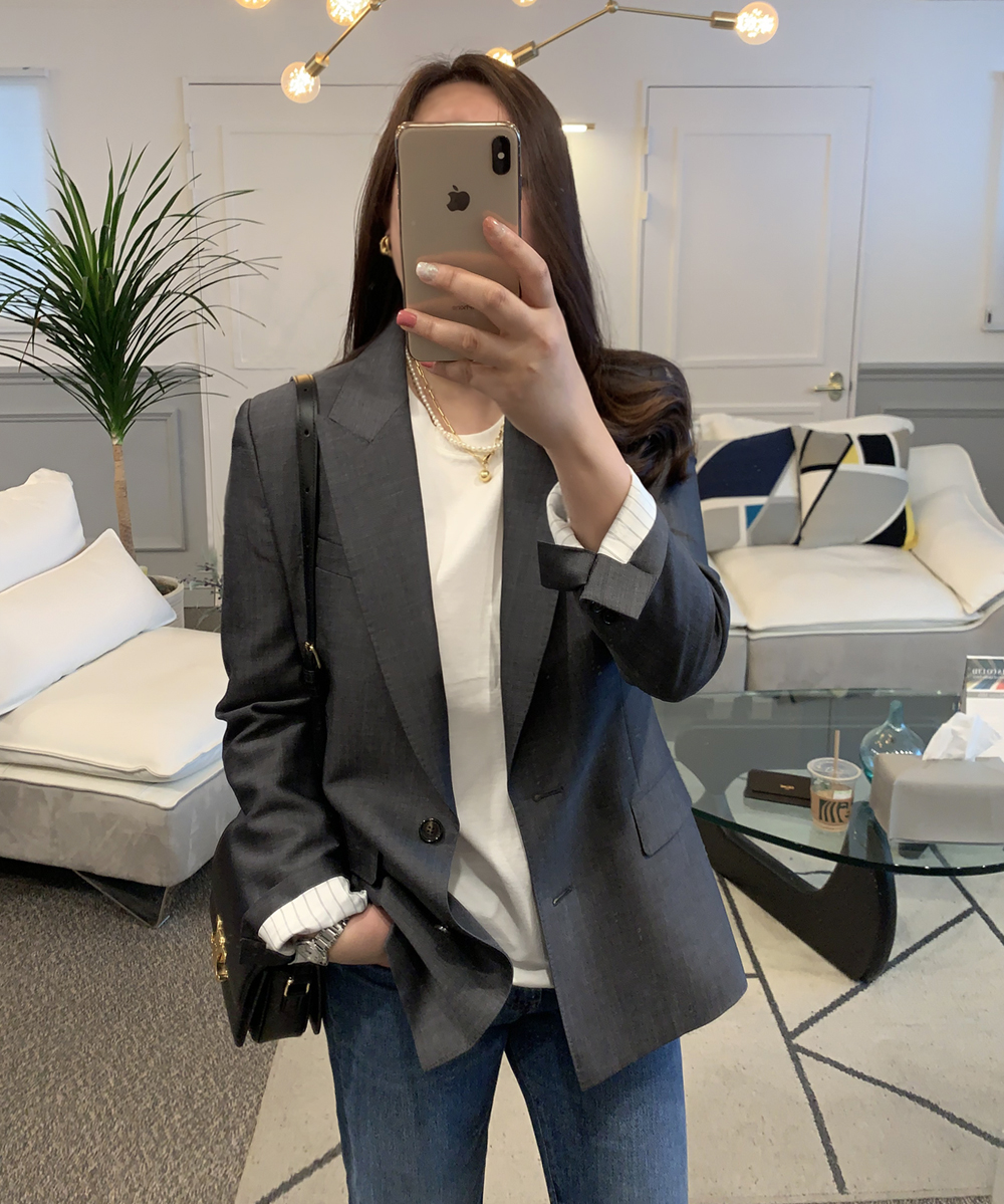 클래식하고 세련된 분위기를 선사하는 심플하고 매니쉬한 느낌의 자켓으로