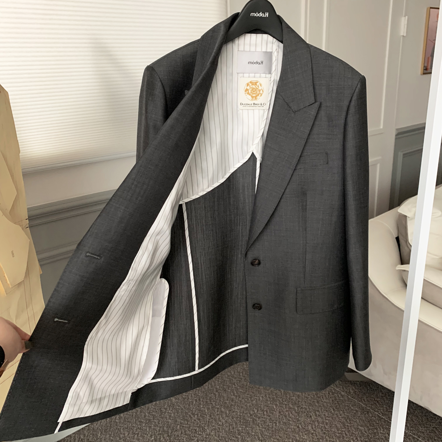 - 덕데일브로스 사의 S/S 썸머 프리미엄 울모헤어 원단으로 제작된 GRAY (그레이)컬러의 자켓