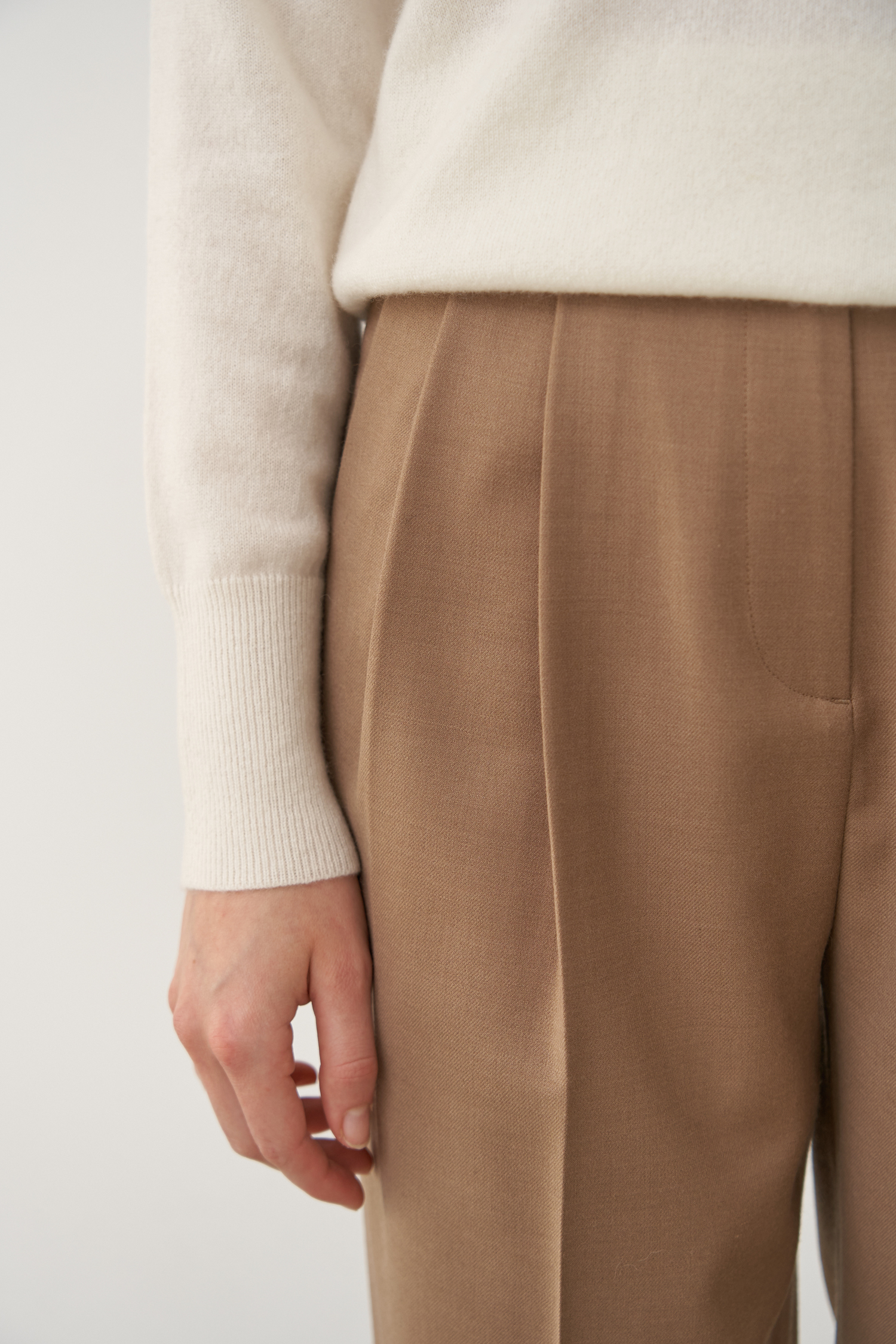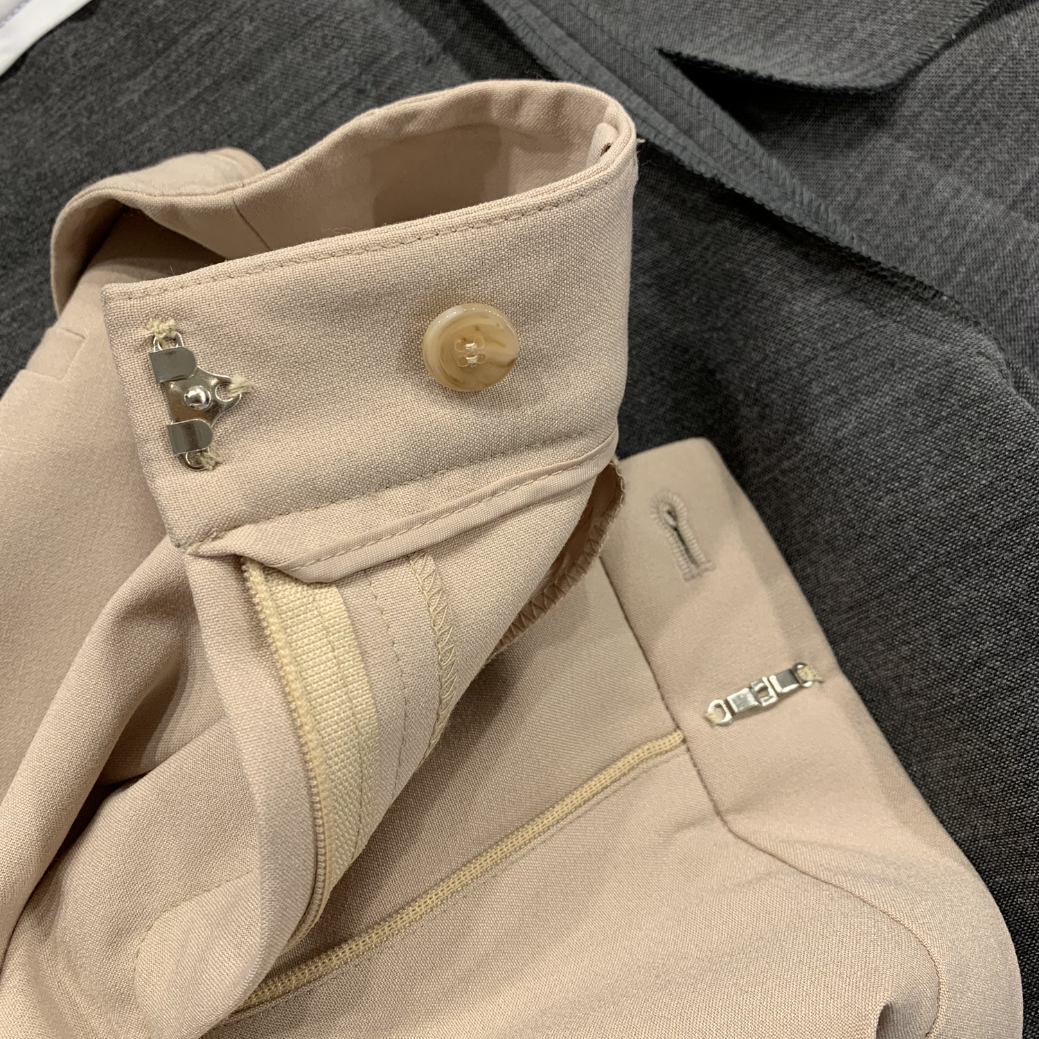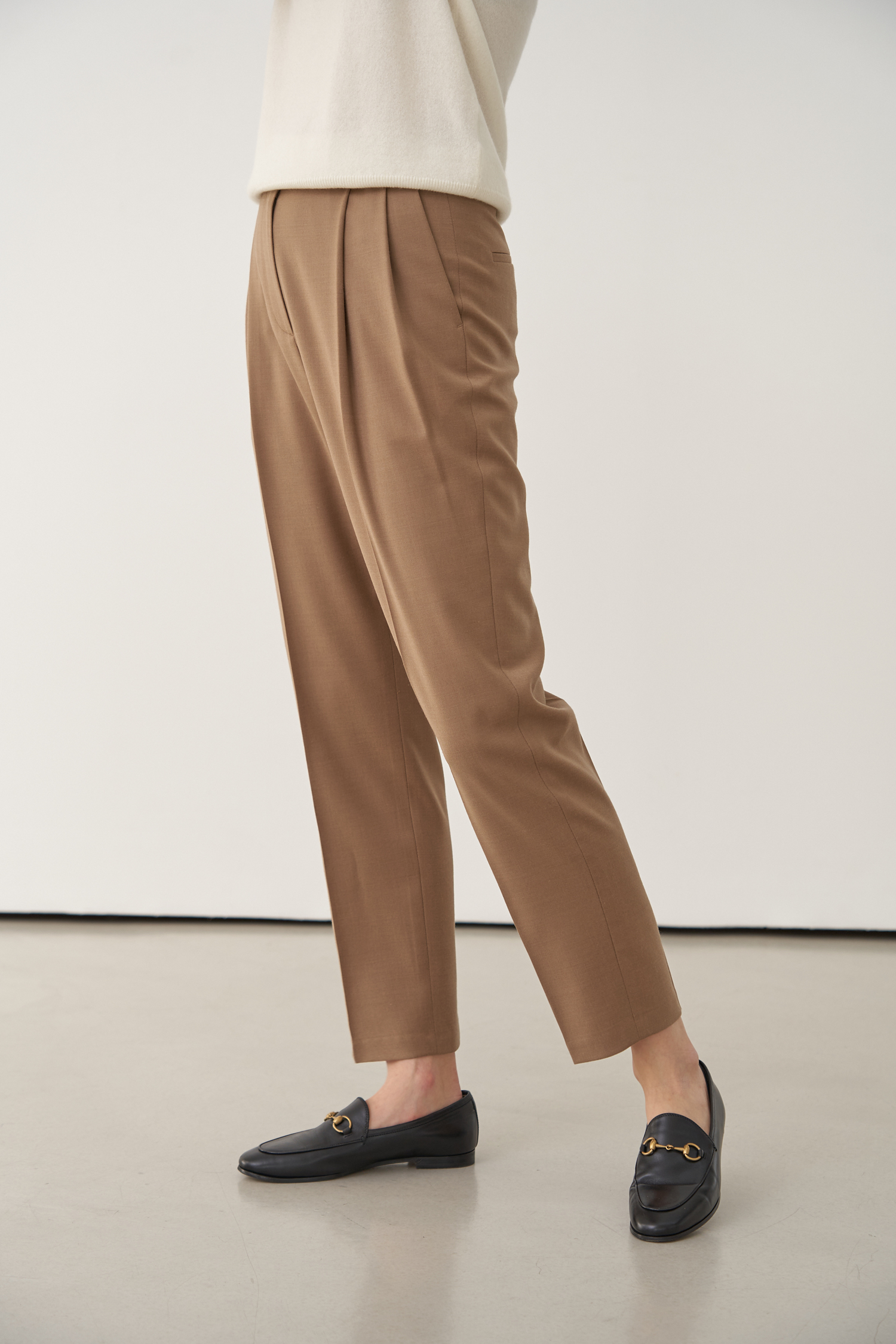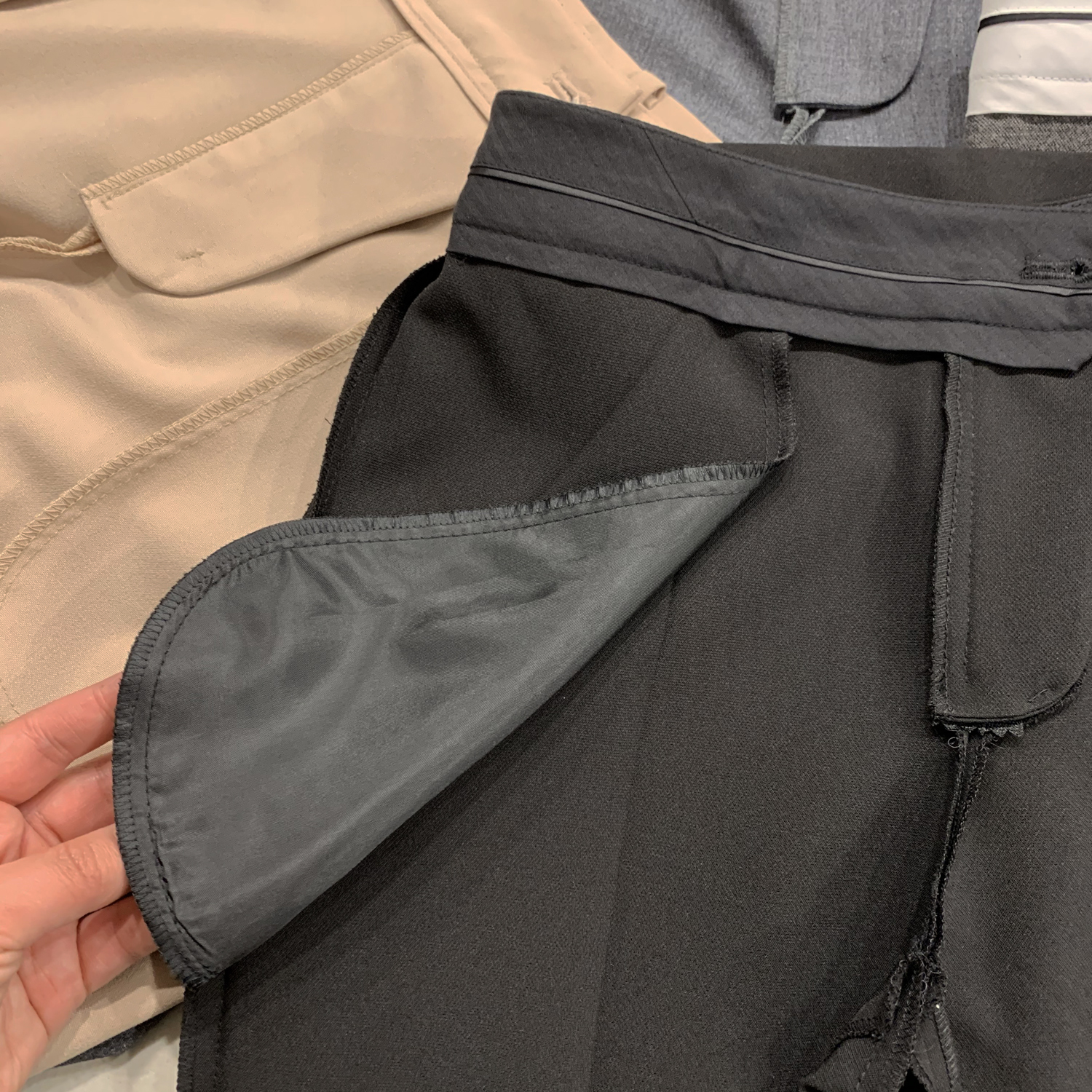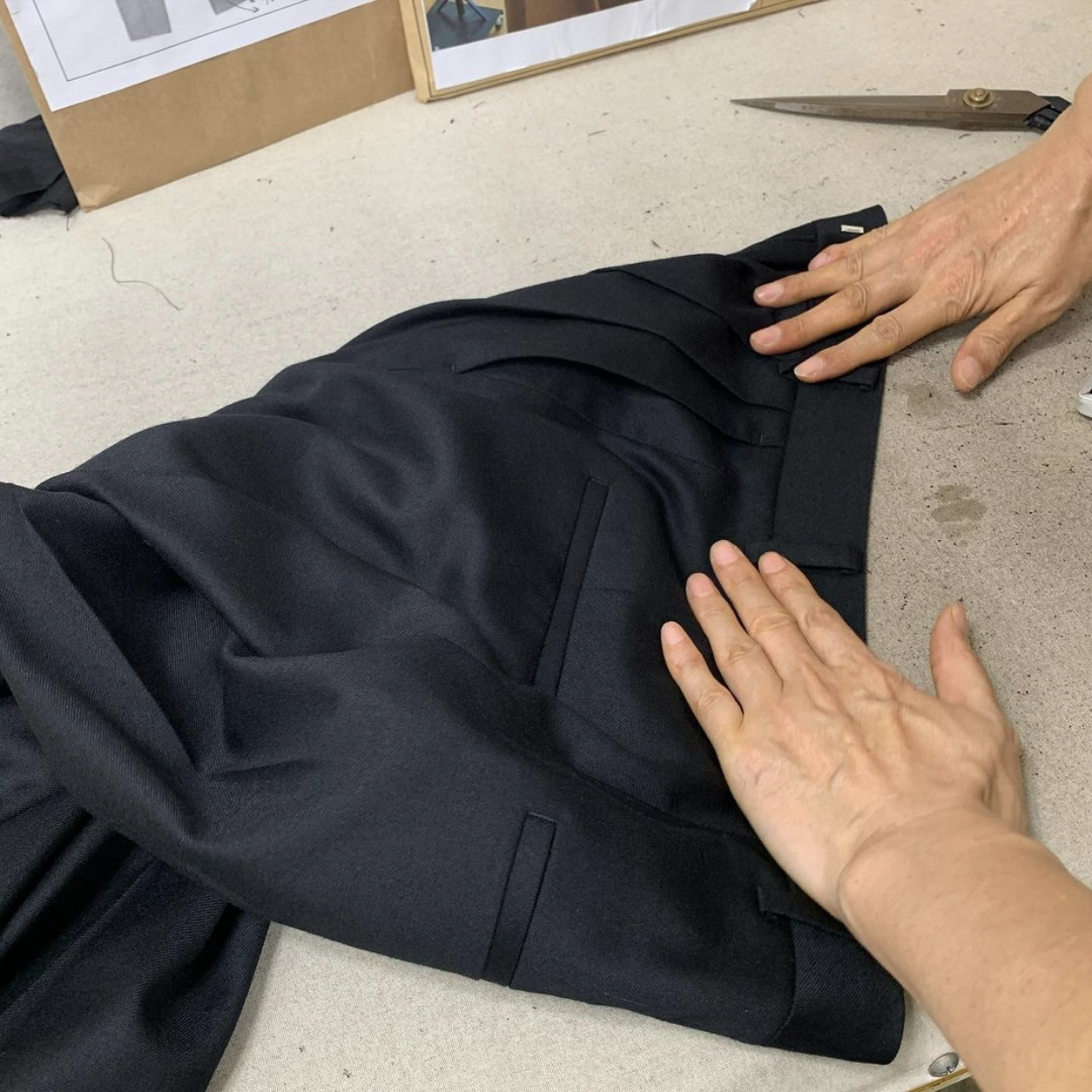- 'TAKISADA'사 마이크로 원료를 사용한 울을 능가하는 새로운 하이브리드 소재로 제작된 핀턱슬랙스