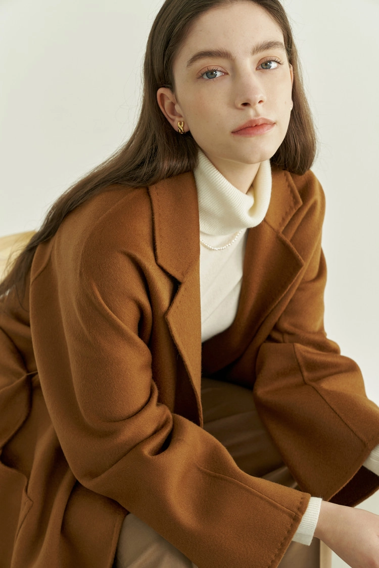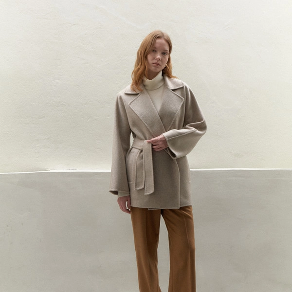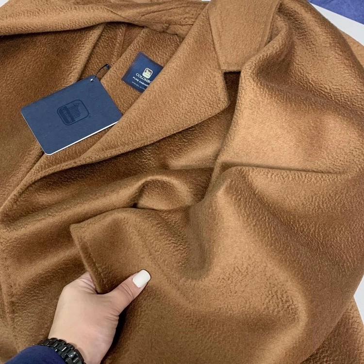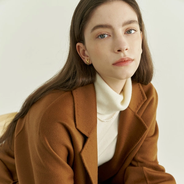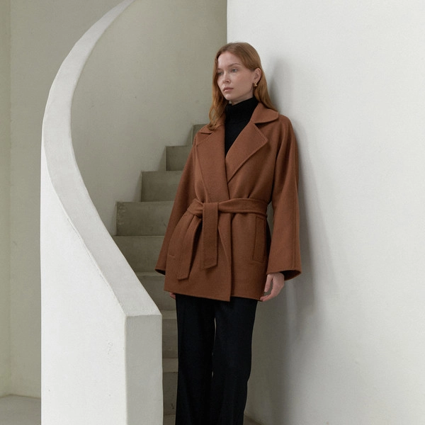 콜롬보 사의 캐시미어 원단으로 제작된 타바코 컬러의 핸드메이드코트