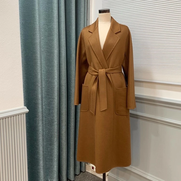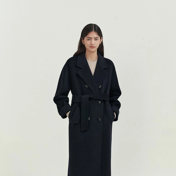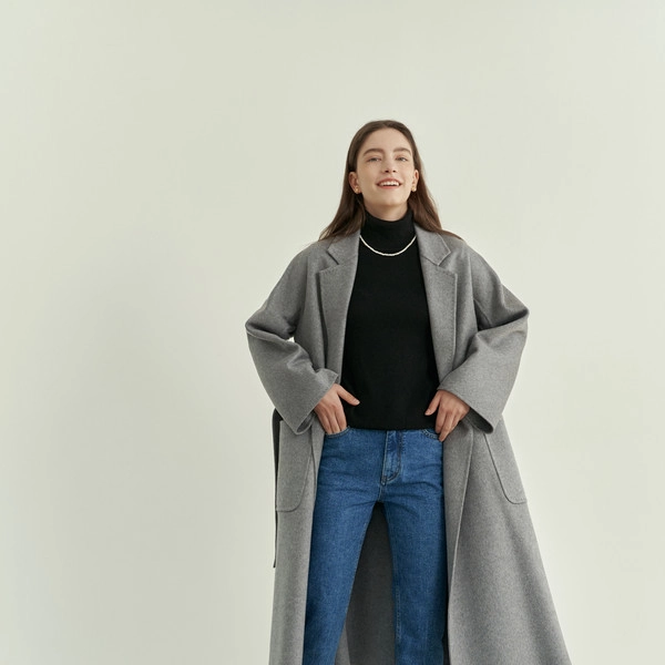 노치드 라펠와 패치 포켓 디테일의 롱 캐시미어코트
